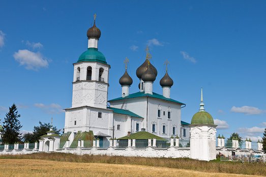 Храм святого пророка Божия Илии, находится в 4 км от города Кадникова, на возвышенном холме. Это один из древнейших и красивейших храмов Вологодской епархии. Первые упоминания о церковных сооружениях на данном месте относятся к 1631 году, когда на погосте существовали три деревянных храма: во имя пророка Илии, апостола и евангелиста Иоанна Богослова, а также святых мучеников Флора и Лавра. Со временем эти постройки пришли в ветхость и были разобраны. На их месте был возведен новый каменный храм, строительство которого завершилось в 1776 году. Архитектурно здание представляет собой двухэтажный каменный храм, выполненный в традиционном стиле. Верхний храм увенчан пятиглавием, что придает ему величественный вид. В конце XVIII — начале XIX века к основному зданию была пристроена колокольня в стиле барокко, гармонично дополняющая общий ансамбль. Храм имеет три престола: главный, расположенный в верхнем храме, освящен во имя пророка Илии; северный придел, устроенный в апсиде верхнего храма, посвящен святым мученикам Флору и Лавру; нижний теплый храм освящен в честь апостола и евангелиста Иоанна Богослова. Внутреннее убранство храма включает золоченый иконостас в стиле рококо, который сохранился до наших дней. В период с 1917 по 1938 год храм продолжал функционировать, несмотря на сложные времена для Русской Православной Церкви. В 1938 году здание было закрыто, и в его стенах разместили архив НКВД, что способствовало сохранению внутреннего убранства и иконостасов. После окончания Великой Отечественной войны, в 1948 году, богослужения в храме были возобновлены.