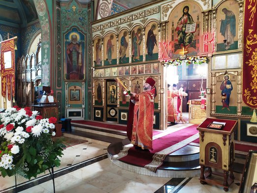 А на утренней службе, в убранстве цветов, -