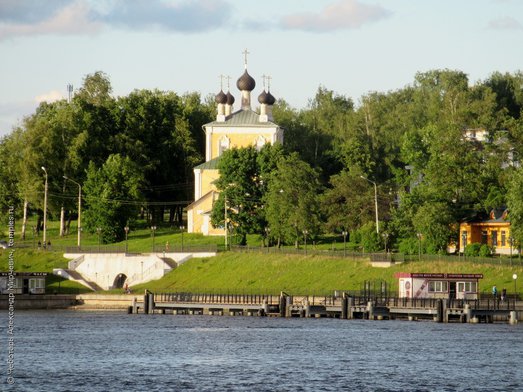 Церковь Фрола и Лавра встречает вплывающих в Углич: