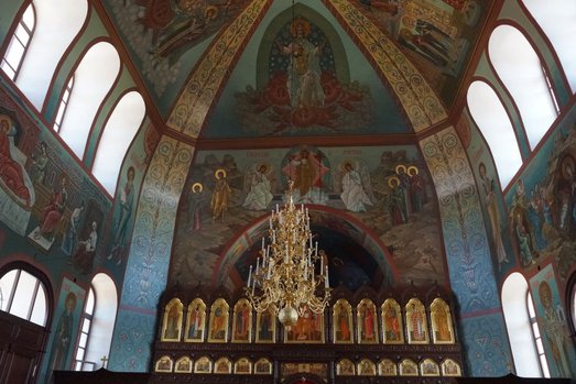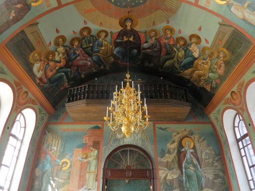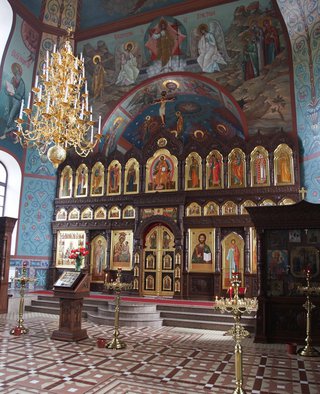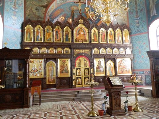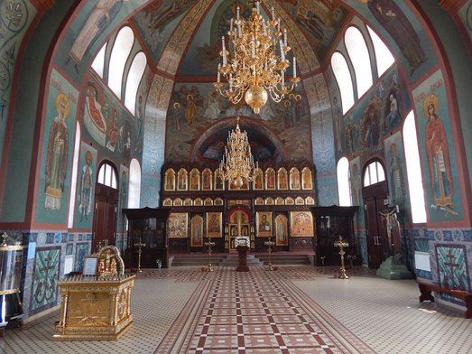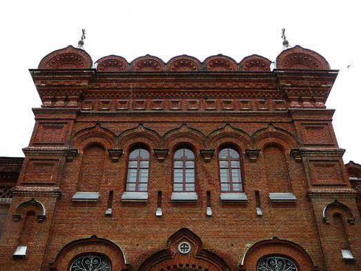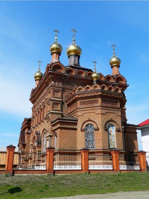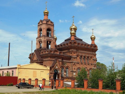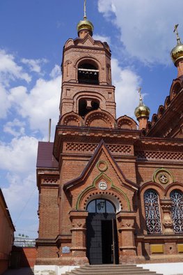 Архитектурное описание. Здание возведено в русском стиле, возникшем во второй половине XIX в. Конструкция храма довольно простая: массивный четверик с традиционным пятиглавием, но масса архитектурных деталей придает своеобразие храму. С востока к четверику пристроена одна граненая апсида, увенчанная маленькой главкой. С запада, над притвором, сооружена колокольня, имеющая также граненый шатер. Наиболее яркой и запоминающейся особенностью архитектурного облика храма является его декор, придающий ему праздничность и нарядность. Храм украшают многочисленные карнизы, кокошники, поребрики, бегунки, розетки – детали, сделанные из фигурного кирпича. Оригинальность фасадам придают вытянутые и сдвоенные окна. Великолепно крыльцо с острым щипцом, напоминающее о древнерусских теремах. Роспись храма сделана вскоре после его постройки и представляет собой своеобразный вариант в те времена стиля модерн.