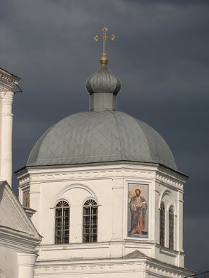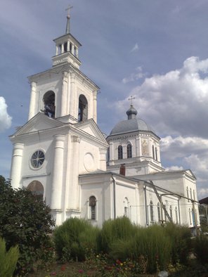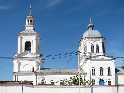 Расположена на холме в центральной части города. Каменная церковь Вознесения Господня с приделами Воздвижения креста(южный) и св. Варвары (северный) была построена в 1776г. В 1869 г. церковь перестроена: расширена трапезная, изменён декор нижнего яруса церкви и колокольни. В облике церкви до сегодняшних дней сохранились элементы барокко и русского стиля 19 в. Здание кирпичное, стены побелены по кладке.