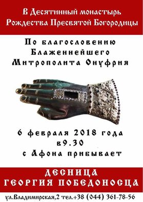 В Десятинный монастырь г.Киева прибывают мощи вмч. Георгия Победоносца