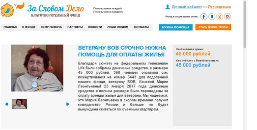C историй ветерана Великой Отечественной войны Марии Леонтьевны Коневой организуют многочисленные мошеннические сборы на разные счета. ФАКТИЧЕСКИ ПРОЕКТ ЗАВЕРШЕН !!!