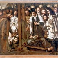 Но чего не могли сделать ненависть язычников и жестокость римских властей, совершила черная зависть, одна из сильнейших страстей греховной природы человека. Старый врач-наставник, у которого в свое время святые братья изучали врачебное искусство, стал завидовать их славе. Доведенный до исступления этой коварной, все иссушающей страстью, он призвал святых братьев, когда-то любимых своих учеников, будто бы для собирания редких лекарственных трав и, заведя их далеко в горы, убил, а тела бросил в реку.