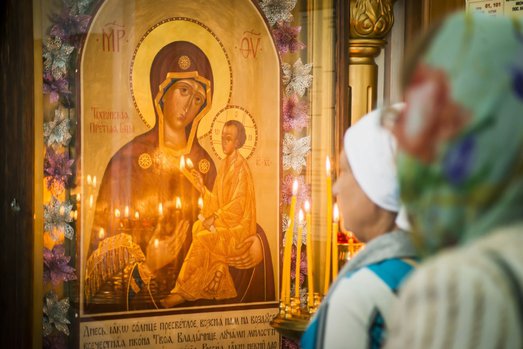 И наверно, у каждой из нас иногда бывает такое время, когда мы впадаем в некоторое нерадение или чувствуем охлаждение к духовной жизни, или какую-то особенную брань страстей. В это время мы и можем прибегнуть с молитвой к Божией Матери. И Она обязательно возбудит наше сердце от греховного сна, наполнит его живым покаянным чувством, ревностью к добродетели и духовной радостью. У кого-то, возможно, возник сейчас такой вопрос: «А не будет ли молитва к Божией Матери отвлекать нас от молитвы Иисусовой? Разве не лучше всегда молиться Самому Господу?» Но в действительности Богородица и подает нам благодать молитвы Иисусовой. Ведь Она Сама и есть изобретательница умной молитвы! Святые отцы говорят, что до Нее люди не знали этого делания. Пребывая во Святая святых Иерусалимского храма, Она первой из людей стала непрестанно творить умную молитву. И неужели Она, будучи основательницей молитвенного делания, не подаст нам благодать молитвы? Наоборот, Она и научит нас молиться, если мы попросим Её об этом. Божия Матерь Сама всегда пребывает в общении с Богом, и желает и нас тоже привлечь в это сладостное общение. И когда мы молимся Божией Матери, Она возгревает в нашем сердце любовь к Господу. Неслучайно на иконах Она почти всегда изображается с Богомладенцем. И даже если Божия Матерь на иконе одна, то Она изображается в молитвенном предстоянии пред Богом. То есть, Она неразрывно связана со Своим Божественным Сыном. Она Сама непрестанно молится и потому если мы будем молиться Ей, то не потеряем, а наоборот приобретём молитвенную благодать. Человек, который молится Богородице, просто не может не любить Бога! Старец Силуан рассказывает один необычный случай из своей жизни: «Когда я был молодым послушником, однажды молился я пред иконой Божией Матери, и молитва Иисусова вошла в сердце моё и сама стала там произноситься».