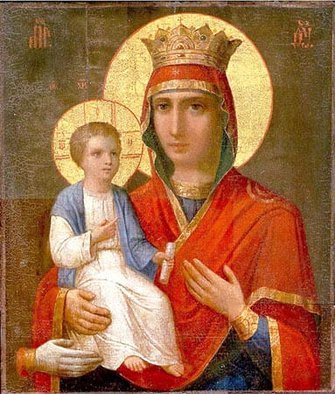 С иконой Божией Матери, именуемой "Троеручица" (VII).
