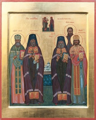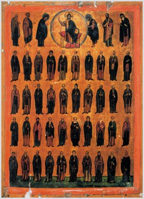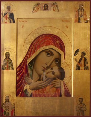 Возсия́ нам, я́ко со́лнце светоза́рное от восто́ка в велеле́пии./ Твоя́, Влады́чице, ико́на,/ озаря́ющи чуде́с сия́нием пресла́вно всех, приходя́щих к ней с ве́рою и любо́вию/ и моля́щихся усе́рдно к Твоему́, е́же о Сы́не Твое́м и Бо́зе, вели́чию./ Сла́ва Бо́гу, Евфроси́ном сию́ да́вшему нам!/ Сла́ва Приве́дшему ю́ от Царьгра́да!// Сла́ва Даю́щему то́ю всем исцеле́ния.⚜⚜⚜