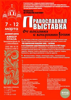 С 7 по 12 марта 2017 года в соответствии с «Годовым планом православных выставочно-ярмарочных мероприятий на территории города Москвы» в деловом центре «Амбер Плаза» состоится XII Международная православная выставка «От покаяния к воскресению России».