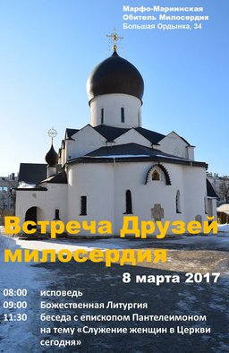 Я хотел бы пригласить всех вас в этот памятный день в Марфо-Мариинскую обитель милосердия на Божественную Литургию Преждеосвященных Даров, чтобы вместе помолиться, а затем побеседовать на очень важную тему: "Служение женщины в церкви сегодня".