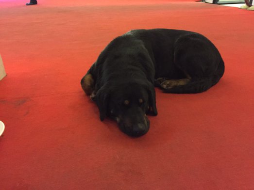 Братья и сестры! Собака ищет хозяина. Пришла к Александру Б.(который уже взял кошку и собаку, как вы помните) на работу. Видимо, кто-то выбросил или она потерялась. Беременная, ротвейлер. Легла у входа. +7 (985) 288-47-15 - Александр Б.! Девушка-волонтер взяла ее в стационар потом поместит временно в приют. Собака добрая и дружелюбная.