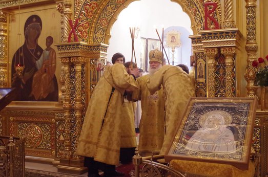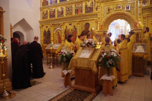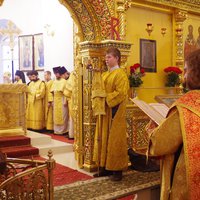 12 февраля (понедельник) 2018 г. В день памяти учителей и святителей Василия Великого, Григория Богослова и Иоанна Златоустого, настоятель храма святого благоверного великого князя Александра Невского митрофорный протоиерей Олег Тэор посетил Собор Трех Святителей Спасо-Елеазаровского женского монастыря, где сослужил Божественную литургию Его Высокопреосвященству Митрополиту Псковскому и Порховскому Евсевию. По окончании Божественной Литургии Псковский Архипастырь обратился ко всем собравшимся со словом приветствия.