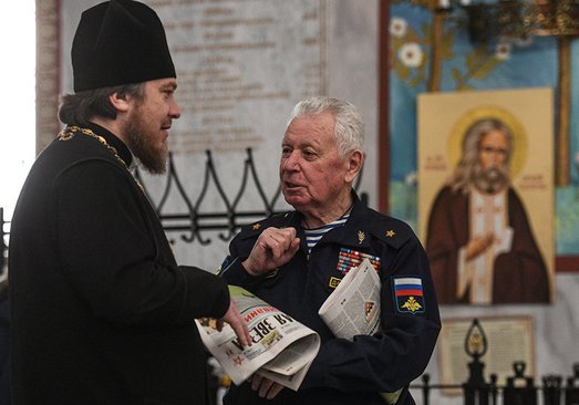 Прихожанин Александр зашел в храм, ведя под руку протоиерея Олега Тэора, духовника легендарной Семьдесят шестой Псковской дивизии ВДВ. По сути, это первый в России капеллан ВДВ, он окормлял бойцов еще в СССР, когда священников и близко не подпускали к солдатам.