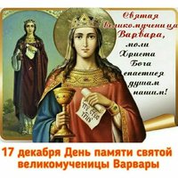 Свята́я сла́вная и всехва́льная великому́ченице Варва́ро! Со́браннии днесь в хра́ме твое́м Боже́ственном лю́ди, ра́це моще́й твои́х поклоня́ющиися и любо́вию целу́ющии, страда́ния же твоя́ му́ченическая, и в них само́го Страстополо́жника Христа́, да́вшаго тебе́ не то́чию е́же в Него́ ве́ровати, но и е́же по Нем страда́ти, похвала́ми ублажа́юще, мо́лим тя, изве́стная жела́ния на́шего хода́таице: моли́ с на́ми и о нас, умоля́емаго от Своего́ благоутро́бия Бо́га, да ми́лостивно услы́шит нас, прося́щих Его́ благосты́ню, и не отста́вит от нас вся ко спасе́нию и житию́ ну́жная проше́ния, и да́рует христиа́нскую кончи́ну животу́ на́шему — безболе́зненну, непосты́дну, ми́рну, Боже́ственных Тайн прича́стну, и всем, на вся́ком ме́сте, во вся́кой ско́рби и обстоя́нии тре́бующим Его́ человеколю́бия и по́мощи, вели́кую Свою́ пода́ст ми́лость, да благода́тию Бо́жиею и твои́м те́плым предста́тельством, душе́ю и те́лом всегда́ здра́ви пребыва́юще, сла́вим ди́внаго во святы́х Свои́х Бо́га Изра́илева, не удаля́ющаго по́мощи Своея́ от нас всегда́, ны́не и при́сно, и во ве́ки веко́в, ами́нь.🙏🙏🙏