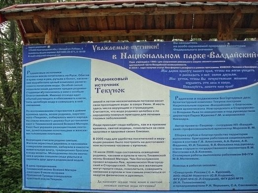 Как добраться: из Валдая нужно доехать до села Новотроицы, после чего возле моста слева (в направлении на Угловку) найти поворот на небольшой асфальтированный тупичок со знаком «въезд запрещён». Затем пройти около 100 метров по удобной ровной дорожке — и оказаться у родника.
