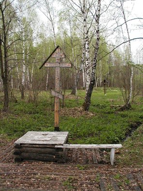История появления Колычевского Казанского женского монастыря тесно связана с этим колодцом. А дело было так, примерно в 1800 году один благочестивый крестьянин, помещика Титова нашел икону, на дереве у лесного колодца, она была 5 на 6 вершков необычного вида и написана по старому. Найти хозяев иконы не удалось во всей округе и тогда решили поставить часовенный столб и киот для иконы, а немного позже и часовню срубили в которую и поместили икону, в народе прозвали "явленной". На иконе была изображена Богородица со святой Агнией и святой Маргаритой. К колодцу и явленной иконе потянулись богомольцы со всех волостей кто прознал об этом чуде. Святой источник расположен между деревнями Колычево и Сазоново, на расстоянии 1 км к северо-востоку от Колычёво и в 400 метрах юго-восточнее Сазоново. Во времена лихолетья много раз пытались осквернить святое место, но паломничество и крестные ходы из деревни продолжались вопреки всему. Для забора воды нужно ведро. В 1, 5 м от источника стоит высокий поклонный крест, в 15 м ниже часовенный столб с иконой Казанской Божией Матери, чуть поодаль построена закрытая купальня для братьев и сестер с купелями. От колодца родниковая вода узким ручейком убегает вниз к притоку реки Щелинка. Как добраться: общественным транспортом деревня Сазоново находится в 14 км южнее города Егорьевск, от метро «Выхино» автобусом № 325 до станции Егорьевск на Казанском ж/д направлении, далее автобусом № 21. От остановки автобуса двигаемся 400 м в сторону д. Троицы. От крайнего дома № 2, слева от шоссе, уходим грунтовой дорогой вдоль его забора и далее по границе поля и луговины с редколесьем. Справа начинается лесной массив из густого высокого березняка. Слева проходим три старых дуба (от шоссе 300 м). Дорога приближается к березняку и через 150 м от дубов выходит на его край. Здесь начинается понижение к ручью - притоку реки Щелинка в 150 м отсюда. В 20 м от края березняка находится святой источник в крытом деревянном колодце-срубе. Личным транспортом из Москвы движемся по Егорьевскому гл. шоссе, затем по автодороге Р115, расстояние от МКАД 113 км. В сухую погоду можно подъехать на машине, свернув с асфальтовой дороги Сазоново-Раменки через 1 км после развилки и ещё 400 метров по грунтовке через поле к роще на юго-западе.