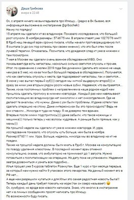 Вот такие вести вчера опубликовала мама нашего подопечного онко мальчика Ильи! Хорошие или не очень, решайте сами. Лекарства Роаккутан, по прежнему Илье не выдают, поэтому наше сообщество волонтеров с вашей помощью продолжит следить за лечением Ильи и помогать в приобретении лекарств!!! Илье желаем скорейшего выхода в ремиссию! Дай Бог всем здоровья!