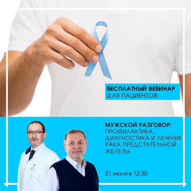 21 июля с 12:30 до 14:00 приглашаем на бесплатный вебинар для пациентов «Мужской разговор: профилактика, диагностика и лечение рака предстательной железы».