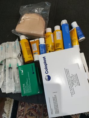 Нашей подопечной были переданы 3 упаковки мешков и средства гигиены (крем и салфетки) для калостомы.