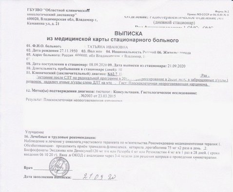 Исходя из вышеописанного, волонтёры посоветовали онкопациентке обратиться за помощью в Росздравнадзор г. Владимира, помогли грамотно составить заявление и отправить.