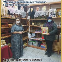 "Магазин православных товаров", 1-й этаж, 17-я секция, часы работы с 10 до 19 ч..