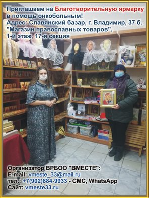 Владимирская Благотворительная организация ВРБОО "ВМЕСТЕ", помогающая онкобольным, проводит традиционную предновогоднюю Благотворительную ярмарку сувениров ручной работы.