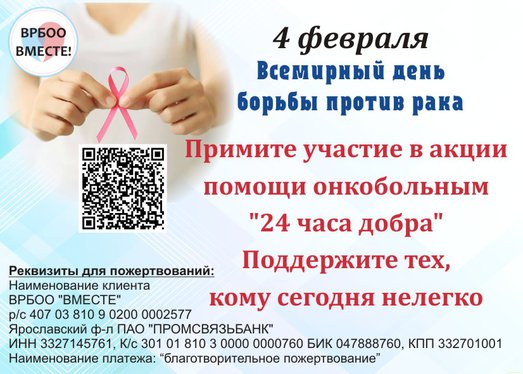 💥Сегодня во Всемирный день борьбы против рака у вас есть замечательная возможность внести свою лепту в дело помощи людям, страдающим онкологическими заболеваниями.