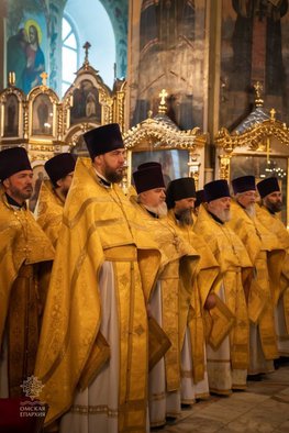 Божественную Литургию совершили митрополит Владимир (Иким), митрополит Омский и Таврический Дионисий, митрополит Оренбургский и Саракташский Петр, епископ Калачинский и Муромцевский Силуан, епископ Тарский и Тюкалинский Викентий, епископ Магнитогорский и Верхнеуральский Зосима, духовенство Омской митрополии.