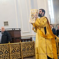 Митрополит Корнилий осматривает новый иконостас в православном храме г. Палдиски.