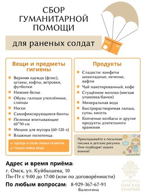 📌 Омская епархия открывает сбор гуманитарной помощи для раненых солдат, находящихся на лечении в госпиталях.