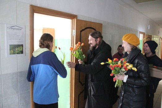 Тюльпаны традиционно ассоциируются с приходом весны, приносят улыбки, радость и хорошее настроение. Именно такая атмосфера царила 17 марта в Андреевском интернате, когда волонтеры Православной Службы Милосердия (Крутая Горка) привезли женщинам цветы.