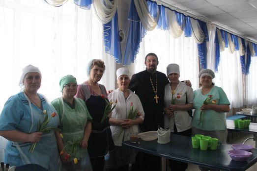 Отец Антоний прошел по отделениям интерната, даря цветы и частичку тепла не только подопечным, но и всем сотрудницам, которые ежедневно заботливо ухаживают за насельницами.