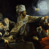 (У Рембрандта на 'Валтасаровом пиру' слова пророчества написаны справа налево в столбик, вероятно, чтобы объяснить, почему истолковать его никто кроме Даниила не смог)[1].