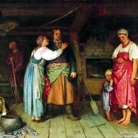 В хате стояла обычная обстановка, присущая многочисленным крестьянским семьям: потрескивала лучина, мерцающими бликами тускло освещая жилище; дети дурачились на полатях, по-детски бранясь и стараясь позаковыристей обозвать друг дружку; невестки заканчивали стряпать нехитрую вечерю; свекровь пряла куделю* (навыки прясть нити из волокна у крестьянок были выработаны до автоматизма и это, в отличие от ткачества, не требовало яркого освещения). Жизнь мирно текла своим чередом.