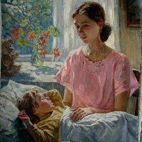 📚📖"Я не могу определить, сон или явь это: на коленях матери я сижу у открытого окна, теплого от высокого летнего солнца. И мать, и окно, и теплота нагретого солнцем, еще не выкрашенного подоконника сливаются в один синий, звучащий, ослепительный мир. Я еще плохо различаю в этом сверкающем просторном мире отдельные черты - пыльную за окном дорогу, красные стволы сосен, высокое небо с белыми недвижными облаками. Мать, подоконник с прозрачными капельками смолы, синее небо сливаются в блаженное ощущение тепла, света и удовольствия. Я тянусь к свету, прутом изгибаюсь на руках, бью мягкими кулачками и смеюсь, смеюсь."...
