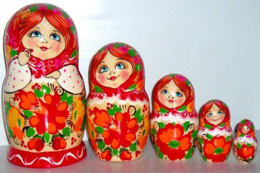 Русская деревянная расписная кукла появилась в России в 90-х годах XIX века, эскизы к которой были предложены профессиональным художником Сергеем Малютиным (1859—1937), одним из активных создателей и пропагандистов «русского стиля» в искусстве. Идея создания разъёмной деревянной куклы была подсказана С. В. Малютину японской игрушкой Дарума, привезённой с острова Хонсю женой С. И. Мамонтова. Это была фигура добродушного лысого старика, мудреца Фукурамы, в которой находилось ещё несколько фигурок, вложенных одна в другую.