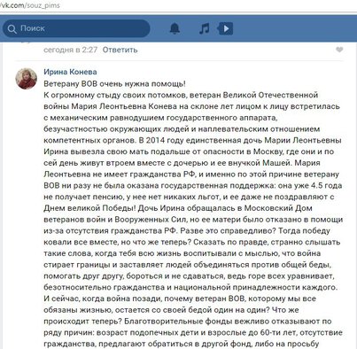 Опять мошеннический сбор с историей ветерана Великой Отечественной войны Марии Леонтьевны Коневой