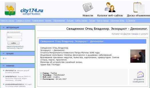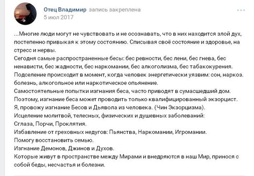 Его же: ⛔ "Священник Отец Владимир. Экзорцист - Демонолог." www.city174.ru/chelboard/chelcompany/652305
