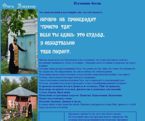 Будьте внимательны! Экстрасенсы косят под православных иеромонахов. Священник с огромным опытом работы. Экзорцист демонолог. Исцеление молитвами тяжёлых физических и душевных заболеваний. Врачевание греховных недугов, пьянства, наркомании, чревоугодия...