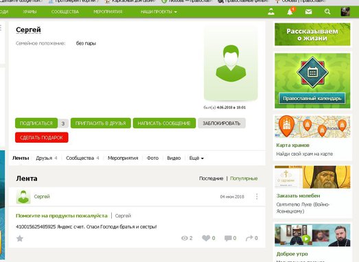 4.06.2018 разместил свою просьбу о материальной помощи Сергей elitsy.ru/profile/206930/: