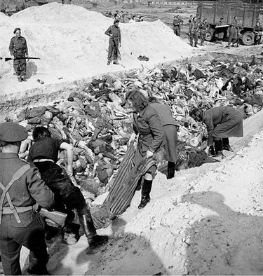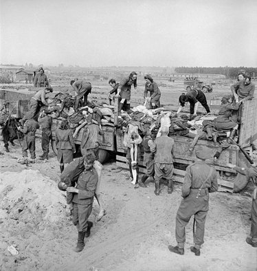 Британских войска, освободившие концлагерь Берген-Бельзен заставили участвовать в разгрузке мертвых тел, солдат и охранников лагеря обеих полов, которые непосредственно или косвенно, стали участниками гибели этих людей.
