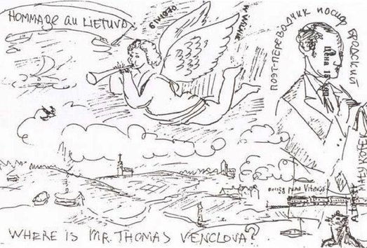 "...отношения Иосифа и Томаса с самого начала сложились замечательным образом, почвы для конфликтов не было. Согласно Андрею Сергееву, «Иосиф Бродский и Томас Венцлова — собратья-поэты и равноценные собеседники». Об этой неординарной дружбе двух поэтов мы с Элей знаем много. На наших глазах они встречались, общались и в Вильнюсе, и в Ленинграде. Вот пример. Случилось так, что в мае 1972 года, перед самим отъездом Иосифа в эмиграцию, в Ленинград приехали Карл и Эллендея Профферы — его американские друзья и издатели — и привезли красивые, с великолепной фотографией Иосифа оттиски с подборкой его стихов из профферовского альманаха. Иосиф дарил эти оттиски друзьям и приятелям, надписывая размашистым почерком. Замечательный прощальный подарок. Мне он надписал просто: «Ромасу от Иосифа. 12. V. 1972». А Томасу — примерно так: «Оставляю тебя за главного». Такая шутка означает многое."