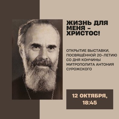 Выставка «Жизнь для меня — Христос» приуроченная к 20-летию со дня кончины митрополита Антония Сурожского, будет проходить в фойе главного здания ПСТГУ с 12 по 26 октября.