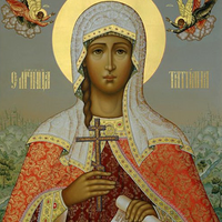 Если на аналойной иконе изображена святая без покрывала, то перед молящимся юная девушка. По соответствующим атрибутам можно узнать кто она - мученица или великомученица.