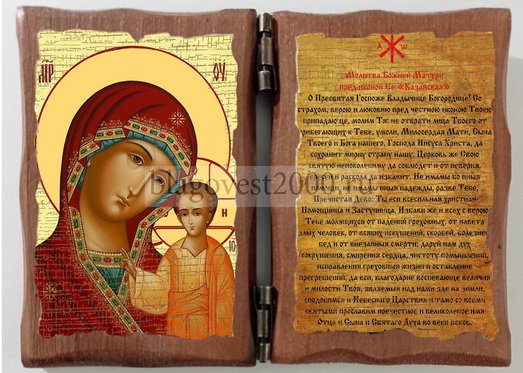 Казанская Б.М. с молитвой. Складень под старину 8Х10