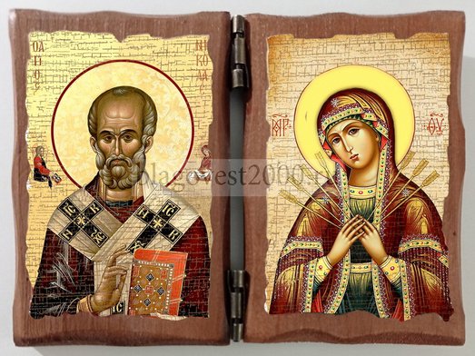 Николай Чудотворец и Семистрельная Б.М. Складень под старину 8Х10