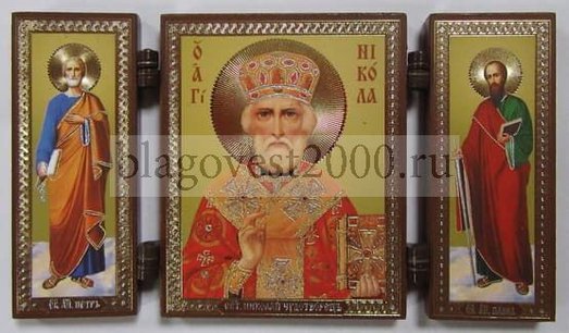Складень МДФ (111), тройной, Николай Чудотворец, с предстоящими, 13 Х 7, 5 см.