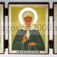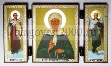 Складень МДФ (110), тройной, Матрона Московская, с предстоящими, 13 Х 7, 5 см.