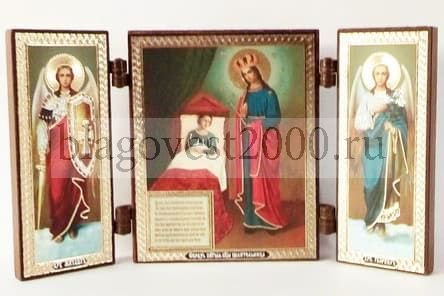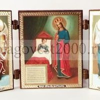 Складень МДФ (98), тройной, Целительница, с предстоящими, 13 Х 7, 5 см.