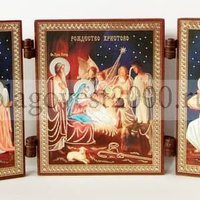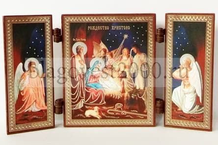 Складень МДФ (80), тройной Рождество Христово, с архангелами, 13 Х 7, 5 см.