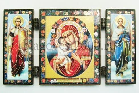 Складень МДФ (51), тройной, Жировицкая Б.М. с архангелами, 13 Х 7, 5 см.